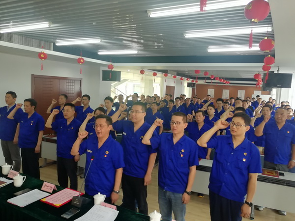 表彰结束后,公司党委书记、董事长、总经理尹仁华带领今年新入党的3位新党员进行入党宣誓,全体党员也集体起立面向鲜红的党旗重温了入党誓词。