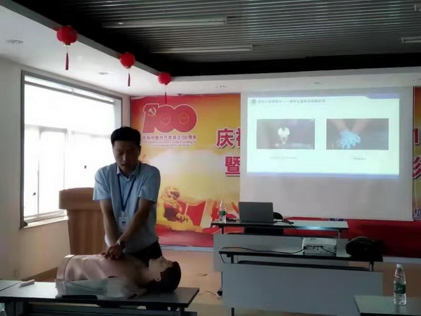 通过谷老师细致的讲解和现场演示,参训职工学习了在遇到突发情况,如人晕倒、窒息等危及生命情况时,如何冷静应对,了解到了救援关键要素和步骤,学习了从大声救援,判断意识、到120电话救援、再到判断呼吸、心跳、转移位置、清除口腔异物、最后胸外按压、压头抬额,人工呼吸等一系列紧急救护知识。